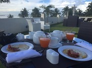 小哥Heinz已经在门口等我们了,带我们到房间,给我们show了一下环境,3楼的天台实在是太熟湖了~老板在三楼小天台种了草地,好有很多植物,摆放舒服沙发和适合喝酒的高脚桌椅,聊了几句,小哥拿出当地啤酒leon-lager, 开始邀请我们一起把酒言欢。喝了点当地啤酒后总算可以回房休息,美美的睡了一觉。早上起来已经9点,我们兴奋的收拾好到天台上享用Heinz给我们准备好的早点,有阳光, 大海,椰子树,还有一群围在我们旁边”友好“的乌鸦.....陪我们吃早点,终于感觉美好的假期开始了。