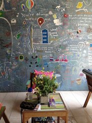 一直很喜欢Sam的这幅涂鸦墙,上面都是住客的留言,满满的都是爱!