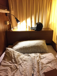 民宿居然就在恒春大街上,正对下车的地方,这是我第一次快速的找到住店,前后不到1分钟。门面俨然是一家咖啡馆,事实证明这确实也是一家有品味的咖啡馆,只是里面还藏着一栋民宿,彩虹波浪客栈。一进到店里就被这气质深深吸引,走过长长的吧台,眼前有一个书柜,里面摆有诗集,左边一格挂着手绘服装。两边的墙壁上有主人自己写的诗句。绕过屏风,推开移门,就是民宿了。抬头是旗子,我在云南见过的那种爬满经文的小旗子,连成一串,从一楼衔接至三楼,楼梯两旁是主人在云南旅行时拍的照,一直延伸到房间过道内的墙壁上,能感觉是出自一个热爱自由的灵魂。 房间内装潢同样有品味,东南亚风格,带点原始粗狂,厚实的木制家具,宽敞的床铺,棒极了。这是环岛睡过的最大的单人床,185的个头在上面活动自如,床头还有暗格。洗漱完毕,去一楼的咖啡厅逛逛,主人正在挑选手绘服装,墙壁上有手写的诗,再往外面,零散坐着几位客人,各自安静的处理着自己的事情,但都喝着同一种咖啡,所以我也要了一杯,45元,苦涩但浓郁的焦香味弥漫至鼻腔。