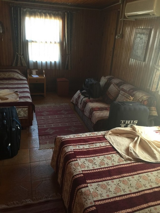 970rmb两晚。传说中的酒店,到处都是福字啊,中国结啊这些。离镇中心要下山,走8分钟。完全就是中国人捧出来的,这个酒店略坑。check in的时候老板热情的问我们有没有订热气球,我们是之前在国内某折扣软件上定好的(其实也不怎么便宜),老板就问我们是哪家公司,告诉他是THE SKY WAY。他用特别不削和轻蔑的态度说了句,一家廉价糟糕的公司。后来带我们去房间的时候不帮忙拿行李就算了,房间门还没开就把我们丢在那转身走了。 进了房我们就傻眼了,我们的房间是1号房,就在酒店大门边,房间小不说,床单脏不说,被子还潮湿,房间的壁炉里面全是垃圾。这时候已经是快凌晨2点了,我们也只能将就住下。第二天开了一整天的空调,被子才好了一点。