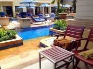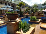 设施完备:Holiday Inn Resort Phuket拥有主翼(Main Wing)和布里斯空翼(Busakron Wing)两处住宿区,6个游泳池(其中有3个是儿童泳池),4个餐厅1个滨海露天吧,还拥有让女儿流连忘返的儿童俱乐部(Kid’Club),位列东南亚5强的Aspara Spa,老婆没时间体验,至今还后悔不已。 位置优越:濒临芭东海滩,出门过马路就是,还有专门的保安为你拦过往的车辆,让你放心穿越马路,从房间穿着泳衣、抱着浴巾就可下海。离芭东闹市区、购物中心不过10分钟路程,散步即可到达,周围美食店林立,简奢由人。 服务贴心:过往服务人员都会热情的打招呼,连开电梯的保安都会用简单的中文与你寒暄。儿童泳池晒得黑黑的,笑得只露出白牙齿的教练;早餐为你领座,双手合十“SAWADEEKA”的服务员,床头布置的鸡蛋花、晚上回来奉上的结婚周年蛋糕,都令人印象深刻,倍感温馨。 如果让我说说它的缺点,那就是没有缺点