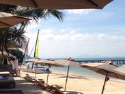 苏梅岛东岸是最为热闹的渣武恩海滩,也有翻译成渣文海滩,各层级的酒店和餐厅较为集中,渣文下方是同样著名的拉迈海滩,品质较好的酒店在拉迈最为集中。选择住这两个海滩的话,略微喧闹,但是比较便利,吃的喝的选择较多。 偶们此次住的洲际在岛西南Taling Ngam塔林甘海滩,整一个角落基本只有这家酒店,规模也不大,前身是一个某某当地度假村,被洲际改头换面后,大大提升了整体品质。 苏梅机场位于苏梅岛东北角,而我们住的酒店在西南角,那叫一个远。如果不介意交通的不便利,那么这里蛮可谓度假胜地,胜在人少,无比清静。。 酒店依山而建,大堂在山坡上,大堂所在主楼往下是海景房,往上是悬崖别墅cliff villa。酒店提供电瓶车往返大堂或者房间到海滩。趟趟给小费,零钱耗光光。 酒店鲜有国人,亚洲人思密达居多,话说回来老外也不多,住了四天连吃喝在沙滩边,估计也就见到20来个住客。 酒店的flame餐厅貌似在苏梅到也排得上号,海鲜自助或泰餐味道都不赖,价格也比三亚厚道。