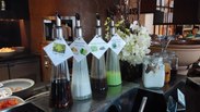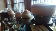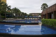 华欣洲际位于华欣的南边,沿海而建。出门交通基本靠步行和打车。从华欣洲际打车到夜市约80-100B,10分钟。走路约30分钟。华欣洲际开通了从华欣洲际到曼谷洲际的班车,每天上午11点从华欣洲际出发,下午3点从曼谷洲际返回,单程800B。当然这个价格我觉得小贵,因此也就没有坐。基本格局是这样的,进门就是个浴缸,洗漱池。房间外有一个小阳台,外面就是个小花园,中间有一个防蚊帐。但早上有点吵,因为花园外面就是泳池。 预订的大床房,应该是1米5的床,布置的规规矩矩,谈不上什么亮点,但也没有什么可挑剔的地方。父母满意就好。我们只用了酒店的早餐。菜色和味道都还是不错的,泰式、西式为主,当然泰国酒店的水果是非常的丰富的,一般都有5种以上的水果。