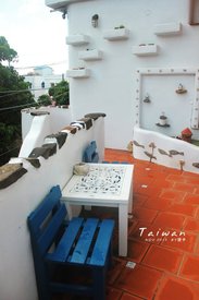小径民宿在垦丁大街往下走2街的一个巷子里,很安静。这里是非常地中海的一家很有情调的民宿。《王子变青蛙》就是这里拍摄的哦~非常漂亮~小复古的装饰,明度高的颜色撞色。木质的蓝色大门。都带着浓浓的一股地中海童话的感觉。老板家的多肉植物和小摆设很家居很温暖。