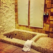在龍磐公园附近新开的民宿"洋老院",房间也非常少,然后我们悲催地发生了乌龙订房事件。首先我们订的那个房型没有给我预留,其二房东只给我们预留了一天而非两天的房间。他们家的房间风格我们很中意的,结果被迫要换民宿,房东帮我们打了好多电话都满房,好不容易找到一家7个小矮人童话特色的民宿。 名宿门口的游泳池,水很浅,只适合嬉水。房间内泡澡和淋浴的地儿,全部是敞开式的。设计味儿很足,不过适合搞情调的小情侣。 民宿的早餐都是差不多的,量少但食材很新鲜。