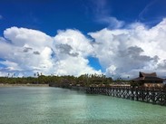 因为工作人员的疏忽,把我们停在了木屋这一边的码头,但不妨碍我们的兴致!第一眼的马步岛,惊艳!属于夏天的,一切的美好,都在这里!!!我们被先迎接到了木屋这边的大厅。进入大厅必须脱鞋的哦!上岛都有welcome drink,貌似是草莓味儿的高乐高+ 烧仙草。 木屋这边的负责人向我们详细介绍了度假村和周围的情况。然后我们每个人都要填写一张保证书,被大家戏称为“生死状”。主要内容就是保证自己遵守岛上各项规定和保护自身安全,违者自负。填完资料,我们坐电瓶车前往水屋。SMART水屋和木屋的区别,不仅在于位置不同,两处的设施、餐饮和服务都是独立分开的。木屋的客人如果要去水屋那里吃饭,是要额外付钱的,而水屋的客人,则畅通无阻。最为重要的是,水屋的环境,真的太棒了!!! 当我们沿着栈桥驶入水屋,眼前的景色,真的让人词穷。。。之前说,第一眼看到马步岛,是惊艳。那么,第二眼看见我们的水屋,就是瞬间陷入爱河。水屋的大厅也更漂亮!不像木屋那里,不可避免的有苍蝇蚊子,这里非常的干净凉爽!而且因为远离木屋,统共也就十几栋屋子,所以真的非常清静。 大厅12个小时提供自助的饮料和小点心,三餐也是自助形式。尤其要表扬这里的餐饮,虽然没有让人眼花缭乱的很多菜色,但是食材新鲜,个头非常大!烹调方式很多元化,东方人、西方人都能接受。你们吃过孩子拳头那么大的虾球吗?(没面粉)吃过小脸盆一样又厚又大的鲳鱼吗?(一切二,放油里煎一煎就出锅的“原始”做法)新鲜的生鱼片无限量供应,切地超级厚,一块就让人满足到流泪!是的,我见识少,光这些就能让我赖着不想走。那儿的工作人员,服务好、效率高。 我们还没参观完,行李就送到了房门口。果断,去看看房间呀!推开门,又词穷了。。。房间里已经打开了空调,打扫地非常干净,还有股淡淡的熏香味儿。有独立的阳台,很大,面朝大海那种,早餐是每天的7点开始。中西餐都有,还有水果、点心、牛奶果汁,都很可口。真的很爱这里的设计。你说它奢华吧,它却不修边幅。利用废旧的椰子壳,种上花花草草,木桩和座椅,都带着与自然朝夕相处的痕迹。但那里的每一座亭子,每一处转角的风景,都恰到好处,过目难忘。