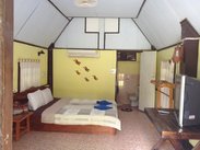 High Land酒店,标间八十多人民币一晚,一个房间就是一个独栋的小屋,非常小清新!旅馆很是让我们惊艳,一个大院子,一个房间就是一个独栋的小房子,五颜六色,非常清新。房间很大,有卫生间,空调,电视,冰箱,不过冰箱和空调都用不了,因为我们定的是80来块钱的风扇房。 pai县海拔比较高,晚上气温较低,根本用不着空调。其实在清迈也一样,晚上开着风扇都觉得有点冷,所以大家不用非定空调房啦。