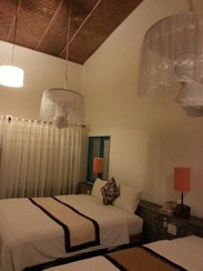 小车飞驰不到一个小时就到了An Bang的 Homestay, 也许很少会在国内旅游网站的攻略上看到这家,但是这家真的太赞太赞了,不愧是TripAdvisor的TOP 1,温暖窝心的感觉让人觉得住在这里很幸福。 An Bang Seaside Village 官网:http://www.anbangseasidevillage.com/ 首先这家的定位就很独特,不同于会安古城大多数的老房子客栈风,也不算是海边吹风的小清新范儿,这种感觉如果非要形容,我觉得更像是带着世外桃源混着青草味的泥土气息的气质,踏实、温暖、放松。主人和工作人员更像是热心的街坊,她们都是当地人,主人也是希望借此为当地创造就业机会并让更多人的来了解并感受这里。所有预定只能通过网站发邮件给她们,不使用任何中介,确保在接触An Bang那一刻起客人就可以享受到她们最真诚的招待。订房需要支付一晚的房费通过PayPal。 这里的房间一共只有9间,分为三个部分,最高端的是Ocean View House,两层,更像是一个套房,可以入住4人;最早建的是三个fruit house,这次我选的就是Banana House,$69/day,400多人民币,包括非常美味丰盛又具有当地特色的早餐。最后是最近才建好的Flower House,离海滩也是最远,不过总体来说都是很近的。 如果非要说缺点,那么就是去会安古镇打车单程要花5美金,但是我想说绝对是值得的。