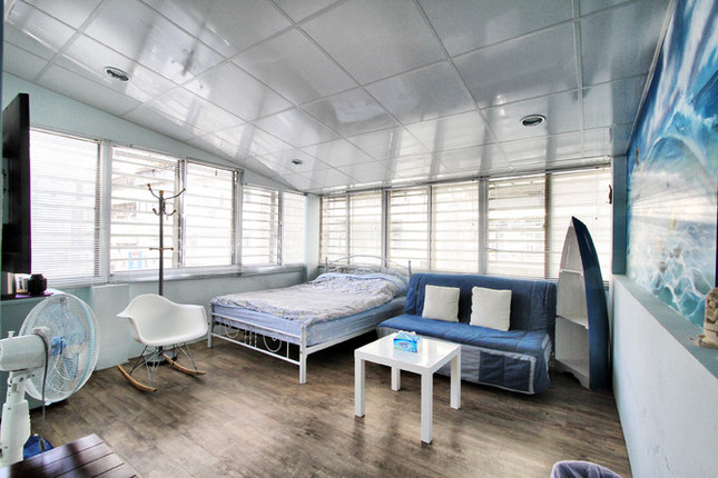 小房子 NTD1800/晚(特别推荐)。随着日程的延续,眼看怎么都不可避免的要赶上周末进驻台北了,想起高雄遭遇夜幕流浪街头一幕不免心有余悸。前夜在花莲就开始上网各种预订平台查询,不禁感叹台北大都市的房价那个肝儿颤啊,开价都是这一路以来每晚平均价格的两三倍。既然横竖都是一刀,顺其自然也就罢了,偏偏都是中间周六那晚已满无房。 继续转变思路:内事问百度,外事找谷歌,“台北 短租”就这么找到了『小房子』:其实,起先还沉浸在找房焦虑中的我并不是被文字所动,单是从那一张张房间的图片中,那不同的主题墙饰、那温馨的暖光、那松软的床和沙发、那杯具那厨灶……我倒是更加乐意用花酒店的钱来体验一下不一样的旅行,不同在不只是日落而归日升而出的一个房间一张床,但你又分明是一个游客的身份穿梭在这个陌生的繁华中。 马上联系到房子的主人Sandy,确认我需要的日期都有房间,价格也比较平和可以接受,“分配”的房间是信义馆的『仲夏艳沙滩』(与其说是分配,因为能很快敲定台北的住宿,我还完全没有从原先的焦虑,以及没有感观概念的台北地图中回过神来。台北捷运象山线信义安和站2号出口一分钟,左转右手边文昌街46号,我对自己的房间仅此信息)。 真正到达那天,对于顶层这间不仅是宽敞明亮的房间,并伴随整面墙彩绘的海浪、阳光、沙滩,床头吊饰和台子上各式精美的贝壳,以及摇椅和小船,我和我的小伙伴儿都惊呆了…… 『小房子』它既不像民宿,也不是旅舍,它也不可能让我真的就自此对台北温馨到家的归属,但它确实在瞬间拨动过我的心弦,当清晨和煦阳光穿过百叶窗的缝隙洒落于床头,我会暂时忘却自己是一个旅者而继续慵懒在床上,或错觉的以为窗外闹市的台北就是外婆的澎湖湾,它分明放慢了我在台北的节奏,在这都市里也带着一份从容和惬意……