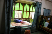 走到这家,是家庭经营的,房间自然不比昨晚看上去好。是家里自己收拾的,要400卢比。没有空调,有电扇。开始我嫌热,没住。。后来我们又回到这家,和老板说上面太热了,把他那个威力超强的电风扇搬到我们房间当空调用,老板答应了。我们总算找到落脚的地方了。主要是还有热水,水比那家1300卢比一晚的不知道大多少。印度的电风扇风力还真不错。晚上吹着都有点冷。40元的空调房挺值得。早知道我就不预定了,大晚上现找,下次就有经验了。房间有个大飘窗,晚上还看见了骑骆驼的商人,哼着音乐, 仿佛走进了一千零一夜的童话故事。 在bundi的日子在我们住的旅馆Haveli parihar palying Guest house 吃的饭,价格实惠便宜,味道还不错,一次蔬菜披萨才7元。上面满满的番茄和土豆。 (提示:印度这边的房间都按设施不同,离卫生间远近收费的)