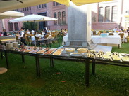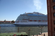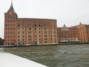 一下火车,酒店迎宾人员已经举着牌子等在站台口,接过我们的行李,安排我们上了水上Taxi,沿着纵横交错、曲曲折折、屋回路转的水道,横跨运河,可谓"威风凛凛、风光八面"。要知道,据说在威尼斯坐一次水上Taxi要80~100欧呢,不是别人请客,自己是绝不舍得滴。 酒店是位于威尼斯主岛南面隔着大运河的GIUDECCA岛上的HILTON酒店,我们到得早,酒店给了一间最好的风景房,正对大运河,可以怡然展望百米宽运河对岸的主岛风光,还有巨型邮轮悄然从窗前游过,引起LP高分贝惊喜的尖叫... 酒店早餐是在蓝天下、清风中的户外吃的,有鸽子、昆虫作伴,还有向日葵和薰衣草... 游泳在酒店屋顶的"ICESKY"泳池,置身于青天碧水之中,俯瞰威尼斯全貌,真是"Swimming in SKy",感觉好极了。