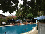 一出机场大门,密密麻麻全是举着写了各个岛名字的木牌接机的小黑,我们没看到喜来登的牌子,就有其他岛的小黑很热情的主动询问并帮我们喊满月岛的小黑过来接我们。和我们一起的还有几对儿,各国男女都有,上快艇喽,大件行李直接交给小黑就好。在驳船码头的休息厅里直接check in,把酒店确认单给小黑,我还把结婚证复印件拿给他们,他们其实也没看,办理完入住手续,会有小黑开车带我们去房间。我钱包里唯一一张1美元的零钱,给了这个送我们到房间帮我们搬行李的小黑。 我们貌似是离大堂最远的海景房,每次吃早饭或者去water center都要走好远啊(5分钟吧,我好懒)房号343,在一层,出后门就是沙滩和大海,不过坐在后门躺椅上看不到大海,被郁郁葱葱的树木挡住了。 看到海那叫一个激动,本来我们商量下一步做什么的时候,我说先去前台换一些1美元零钱做小费吧?老公说要不还是先去水上运动中心报名活动吧?结果俩人一边说一边很默契的脱衣服,换泳衣,连面罩和呼吸管都没拿,一起奔向大海,直接跳下水,兴奋的游了两圈,发现海水刺的眼睛好痛,老公又跑回屋子里拿面罩和呼吸管,我们俩就把这片水域浮潜了个遍,其实不大,不远处就是堤坝,这里的水下大部分珊瑚都死了,鱼儿很少,靠近堤坝的地方有一些大大小小的鱼,虽然很少,不过对于我们俩个生活在内陆的初级浮潜者来说已经很令人兴奋了~ 另外一边的水上屋,满月岛是长条形的,Lobby和Water Center,五间餐厅全集中在一边,有一片私人沙滩和别墅在另外一边,中间这一片,一侧是沙滩别墅(平房,茅草屋顶)和海景房(两层别墅,分为四个房间),另外一侧是水上屋。 Lobby,旁边就是网吧,里面有四台巨大个儿的苹果台式机,也可以用手机或者笔记本连无线WIFI上网,本来我想没事就来这里发个微博得瑟一下的,结果忙的根本没功夫。。。主要是浮潜好累身啊。。。 喜来登的早餐还是不错的,最喜欢他们做的中餐和泰餐,微辣,超好吃,每次都吃好多。 满月岛上中国人确实不少,发现几个规律,看日出的全部都是中国人,没有一个老外,在海边各种摆pose拍美照的也都是亚洲人(也有日本人),带伞遮阳的,带大草帽的,穿长裙长袖防晒服的,甚至拿着保温杯的,全是中国人,我的防晒服还和一位大哥撞衫了。。。颜色款式都一样。。。假装看不见假装看不见。。。淘宝买的果然风险大啊。。。
