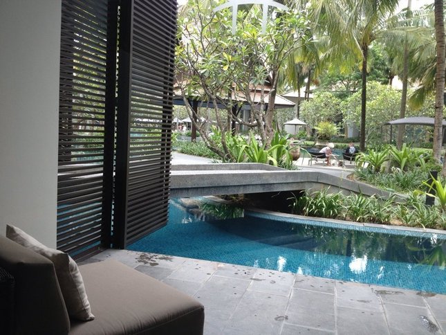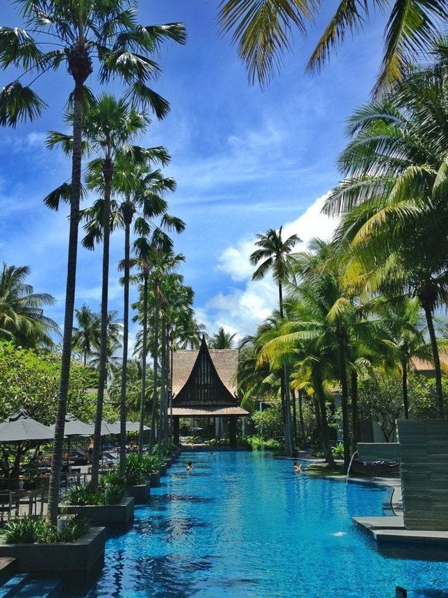 整个酒店由名师设计,深色的木质结构搭配白色墙壁和青铜摆设非常具有东南亚的气息。 酒店房间很大,更值得一提的是更衣室和浴室设计的卧室一样大小,还提供免费上网,枕头被摆成猫耳状,我喜欢,每天晚上还送2块睡前巧克力,今天是黑巧克力,明天是白巧克力,后天是一块黑巧克力一块白巧克力:)酒店特色是游泳池四通八达,推开房门就是。 酒店周边除了一个小公园,几家便利店和礼品店没有什么好玩的地方,我们每天都泡在酒店里上网和游泳,酒店的SPA可以凭房卡7折,但是非常一般。全身去角质就只是在你上身涂上磨砂膏然后冲掉,再涂上润肤霜,天然面部护理 就是再脸上贴上黄瓜片 虽然这里和其他几个小岛比起来有点乏味,但是这是我们旅行的最后一站,我们在这里身体更加得到了充分的休息,精神也更加的放松。所以你如果喜欢泡在酒店里看看书上上网 喝喝酒 听听音乐什么的,这里会对你的胃口。