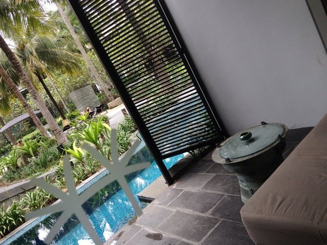 Twinpalms酒店位于SurinBeach边上,酒店餐厅可以看到海滩。 且酒店有自己的沙滩区域和普吉最有名的Beach Catch Club。为酒店住客提供沙滩躺椅,沙滩巾,饮品及晚上的各种酒等。 然后说说偶们滴Checkin。酒店送上精美的欢迎酒,注意是酒哦。现调的鸡尾酒。而且具我们后面几天观察每个不用的住客酒完全不一样。很用心的酒店。 我们预定的是Grand Deleux Lagoon Pool Room。房间直接进泳池,整个房间有点小Villa的感觉。有66平。 酒店非常贴心滴给我们准备了一瓶蜜月香槟,冰镇服务。 而且,Checkin之后,酒店服务员就上门贴心的让你选择自己喜欢的房间精油味道,喜欢的水果,以及枕头中香囊的味道。 细微之处体现酒店的高品质服务! 酒店专程为我们布置的蜜月玫瑰。推开阳台门便是,池边小阳台。 与相爱的人晚上喝着香槟,躺在沙发椅上,吹着凉风。想想都觉着浪漫。事实上我们也这么做了。 酒店的Main Pool。两边都种上棕榈树??难怪酒店中文名是'双棕榈' 应景哦。酒店早餐就餐区分室内和室外。昨天尝试了室外以后,今天特别尝试了室内。不一样的感觉,只是室内显得比室外闷一点。 不过,还是很喜欢。 去往SPA中心。由于提前预约好,SPA师早早滴就在那儿等我们。选择了全身精油按摩。 十分舒爽。整个过程就像是睡了一个长长的觉,久久不愿醒来。 各种按摩结束后,我们被安排湿蒸,与国内明显不同的是他们采用的是带芳香型的气雾装置,雾气更细腻。滋润