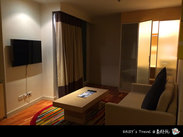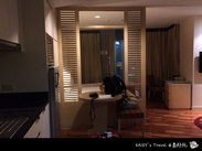打算逛街,就选了暹罗商圈、天铁站点较近的URBANA LANGSUAN,BANGKOK。MTS CHIT LOM 站下,4号出口下天桥后,回头路口左转上 LANGSUAN 路,直行约500米左右,留心左手边有酒店牌子就到了。但酒店大堂不挨着路,从路口走进20米左右,才会到大堂。两卧室公寓2晚共8400铢(含4人早餐)。 酒店房间里有2个卧室,2个卫生间,有开放式厨房和1个小阳台,温馨舒适,有家的感觉。房间里该有的都有,只是缺了拖鞋。前台介绍33楼有无边泳池,住客免费,32楼有按摩室,送了500铢的按摩票,可是我们住的2晚,第一晚看秀,第二晚逛街,没来得及去。