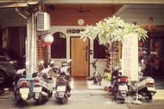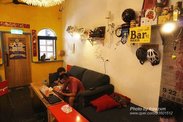 今晚入住的是高雄佰高客民宿,离捷运站不远,步行5分钟就到了,附近衣食住行俱备,地理位置很好。民宿门口有一片鹅卵石,搭配木制的大门,俨然一座小花园的感觉。1楼客厅内,住客们盘腿坐在沙发上聊天,暖黄色的灯光,将整个场景装饰得像咖啡厅,温馨极了。主人是一位有个性的年轻人,不管是发型还是穿着都是时下年轻人中的佼佼者,难怪民宿也被感染了。柜台后面藏着厨房,大约6平米的地方,摆放着各种电器供住客使用。然后上楼,过道的墙壁上被画了满各种涂鸦,以对话的方式呈现,生动有趣,和主人一样。我住3楼,过道尽头的一间4人房,楼道虽不宽敞,但也整洁干净,每一层设有3间睡房2间卫浴,像高档的学生宿舍,顶楼是洗衣间和观景阳台。