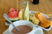 订的民宿叫Villa49,在湖的东面,佛牙寺和市中心在湖的西边,但还好往北面绕湖而行大概15-20分钟步行可以走到,往南面绕的比较大,大概要20-30分钟。民宿是小小温馨的别墅民居,一到就送上了西兰红茶和自制饼干,在小花园享受雨后下午茶。房间比较朴素,早餐还蛮丰富的,还有山里的猴子时不时打招呼。