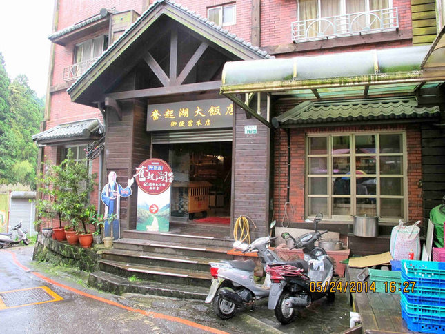 老板一高兴就请我们一大桌,吃的全是当地特产菜肴。甚至还有一大碟乌鱼仔,这个菜我看见在集市上卖也要一千元一百克呢。菜还没有上齐呢…………老板很我们讲起了“奋起湖”的由来。一开始大家听说这个地名都以为可以看见湖呢,可是这个奋起湖是看不见水的湖。原来奋起湖三面环山,一面是平原,在上面看象个奋箕,加上一年四季每天早上都是雾气腾腾风起云涌,看上去就象波涛翻滚的湖面 。而且奋起一词还有正能量呢,所以就冠名为“奋起湖"。