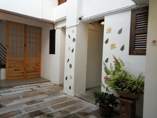 去槟城就是要有懒散的心和坚强的胃,因为那里好像所有人都是懒懒散散的,旅馆老板也是任性的,到那里门都是关着的,好在有另外一家子同时到店要入住,打电话给老板,才来了个小伙子开门。古色古乡的装修风格,家庭房房间都在2楼,需要脱鞋,木地板。 优点:地理位置绝佳,离光大步行5分钟,出门右转就是汕头街,各种特色小吃;房间很干净很大,至少30平方,可以睡4个人,1个双人大床,一个单人小床和一个床垫,除了洗漱用品什么都有,冰箱里连冰块都准备了。房间里各种地图,就是没有壁画地图。一楼有饮料机,豆奶,白咖啡,美禄,奶茶无限畅饮。 缺点:老板貌似很少出现,不知道1楼开店的那个是不是,伺候我们和打扫卫生的只有那个开门的小伙子,入住期间房间不打扫,他英语很烂,除了告诉我们门卡的用法,其余交流基本靠肢体语言,不过很努力热情地在为我们服务,虽然是淡季,生意依旧很好;