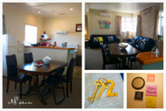 奥马鲁的小公寓是全程最便宜的,只有一间有床有窗户的房间,不过房间窗户外面一条路之外就是大海,位置和风景还是蛮好的。房间干净整洁,有两个公共的浴室,洗衣机和烘干机可以免费使用(歪果仁没有晾晒衣服的习惯,都是用烘干机的,很多营地和酒店都有免费或者投币的洗衣机和烘干机提供)。拍了一下公共的休息区和厨房,还是蛮有复古风格的,房间的钥匙也是古老的feel,第一次见着正常使用的这种小钥匙,挺有意思~