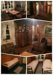 设施和卫生:这是一所营地里唯一的一间木屋,估计建于上世纪中叶,前身也是一所民居,里面保留了许多当年的软装潢,譬如装饰品书架什么的,设施实在太老旧,厨房用具是一路遇到的最破最旧最油渍斑驳的,卫生间类似于中国西北部,马桶上面直接就是淋浴喷头那种……一间卧室在楼下,还算比较正常,还有两间在楼上,从古旧的吱嘎作响的楼梯爬上去,第一感觉阴森可怖,赶紧把灯都打开,又感觉自己置身于灰姑娘的阁楼,在楼上睡觉绝逼需要一定勇气。 地理位置:我也是为着第二天赶飞机才选择这里的,距离埃文斯机场20分钟车程。周边环境应该挺美,正处于一个峡湾中,可惜我们起早贪黑,完全错过了屋外的风景。