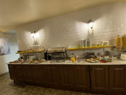 距离圣以撒大教堂五分钟路程。这家旅馆门上只有一个亮黄色的小牌子,写着“neva”。雨夜中,着实不太明显。两人下车后在门口研究怎么开门。这时,司机大叔走过来,帮她们按1#开门。原来门口有开门指示。司机大叔人挺好,特意等她们进旅馆才走。早餐早上9点才开放