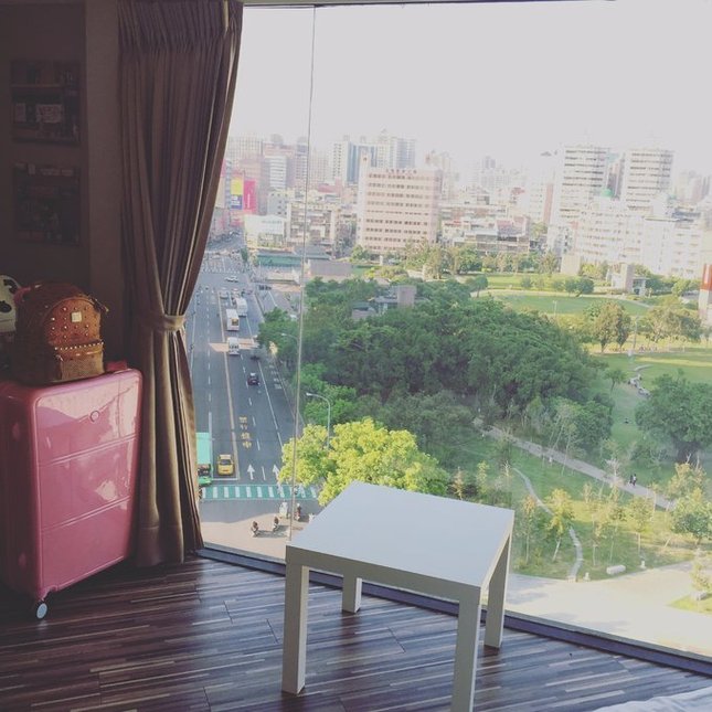 两晚472RMB,其中一晚是周五,周五和周六的房价会贵一些,平摊236RMB/人。房间有超大的一整面落地窗,拉开窗帘就可以看到中山堂和中正公园,白天晚上风景都一览无余。即使在面积并不足够大的房间里,有这样的落地窗,也足够享受台中的风景。