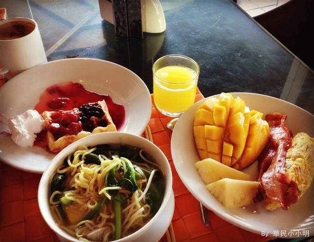 此行入住的是机场北边Mai Khao Beach上JW Marriott的度假村,最初的原因是因为办Chase和Marriott联名信用卡的时候送了很多积分,所以直接兑换的住宿。后来查询了一下发现Mai Khao Beach离巴东那边算比较远,比较僻静,不好的地方是没有特别多可以逛的地方,好处是比较清静。因为我和老公都比较不喜欢人太多的地方,而且此行主要目的是为了休息,所以符合我们的需求。 因为是积分兑换的hotel room,所以没有多fancy,就是garden view。可以选三层有阳台的,或一层有小院平台的,我选的后者。周边没什么dining的选择,所以此行主要都是在度假村里的餐厅吃的。这是在一家Italian style用lunch。JW Marriott的main pool很不错。 最后一天,要求了late check out到2pm,于是一觉又睡到快中午。这边的早餐到11点,所以我们醒来去都是当brunch在吃的哈。话说菜品真的蛮丰富的,也很好吃哟。