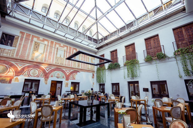 绝对五星级的服务,五星级的设施,整个酒店位于一座16世纪的宫殿内,犹如一座小皇宫,虽然不在清真寺旁边,但是步行距离也就15min,酒店环境非常好 酒店内有中世纪的元素,也有现代的装潢,酒店各处采用了皮革和天鹅绒等华丽材料,华贵典雅。酒店的餐厅更具特色,首先,Arbequina餐厅是米其林推荐餐厅,融合了西班牙和亚洲风味的美食,如果感兴趣可以预约位子品尝一下,价格中等偏上;其次,透明的钢化玻璃下竟然是罗马古迹,check in的时候是可以和前台预约导览参观的,很特别的体验 在这里住宿有个福利,可以免费享受酒店专属的Bodyna Spa水疗中心的Roman baths一小时,开放时间是10:00a.m.– 9:00p.m.记得要提前预约哦 科尔多瓦最负盛名的绝对是每年的庭院节,因此这里的庭院景观就成为了不可或缺的一部分,柏丽奥宫的庭院被橘树和柠檬树围绕,冬天虽然没有鲜花盛开的景色,但也是郁郁葱葱的,阳光露台的休憩和泳池的游弋都是很不错的享受