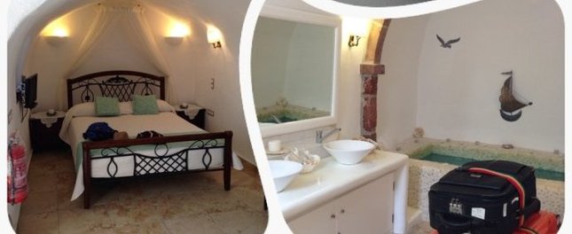酒店还是不错的,房间很大啊,奢侈齐全,伙计超级棒,负责免费接&送港口服务哦,还有就是穴居型,冬暖夏凉,哈哈,早餐很丰盛,我觉得他提供的单人早餐绝对够我们两个人吃还吃不完啊,每天都造成浪费,心里很过意不去啊。 这边其实酒店很多很多,也有很奢华的酒店,比如带私人泳池,无边泳池,悬崖边之类的,当然价格也是有很大不同的,这家酒店在Im,位置比较好,周边就有很多比较好的饭店,还有超市,离公交站也近,还有Jimmy租车行等,出行都还比较方便地,门打开就能看见爱琴海,关于不足之处呢,一个是房子不是纯白的,是米黄的,有点点小失落,另一个呢,沿着步道,所以,你坐在院子里吃东西就会成为别人眼中的风景,哈哈,相对私密性弱点啦。