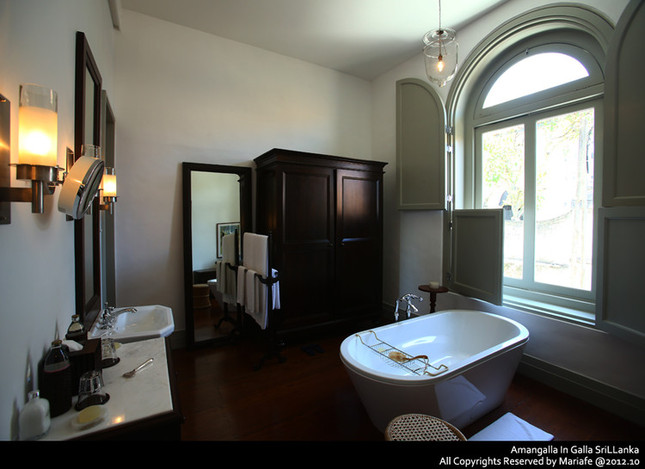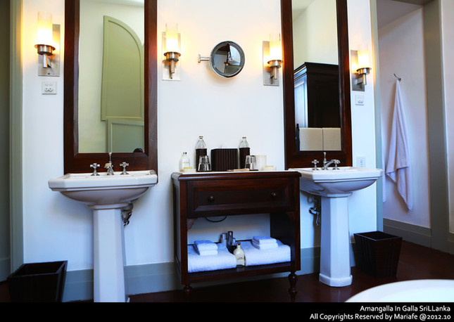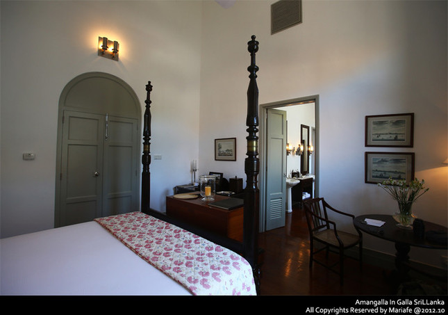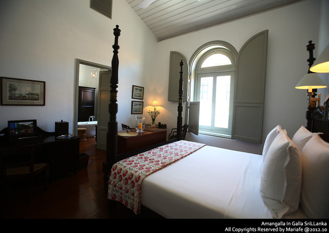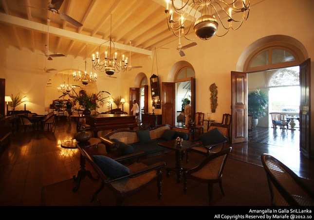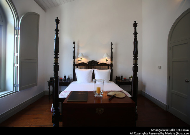 到达Amangalla的时候,不过是早上11点。酒店就在古城的入口。白色殖民建筑,低调的没有任何LOGO。走上阶梯的时候,就有服务员迎了上来,递上冰凉的毛巾,送上Welcome Drink,总觉得Aman就是这样,不张扬,却又恰到好。 处管家带我进房间,其实房间不太大,当然对我一个人而言,足够了。卫生间比起房间来说到是不小,淋浴和浴缸俱全。 虽然酒店不大,但是该有的还是一样不少。比如,空间不算小的图书馆,吹着空调看看书,在GALLA这种天气热的跟鬼一样的地方,实在是莫大的享受。 Amangalla的大堂是对非住客开放的,这里的游客络绎不绝,有过来参观的,有过来喝茶的,比起高昂的房价,他们的餐饮价格实在是非常亲民。 Amangalla的下午茶在游客中仿佛很出名,一切源自于高品质低价格吧,一壶锡兰红茶折合人民币不过20来块,在上海,一杯星巴克的价格。在锡兰,享受到的却是精致的茶具,优雅的服务 。