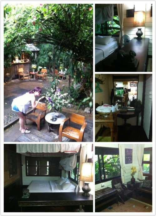置还要更靠近周日市场大街。同样是木屋但这家还真是旧很多,不过房间都设置在2楼,楼下不住人,有点吊脚楼的意思。这家的房间要大太多了,里面沙发、衣柜、书桌等一应俱全,只要你不嫌家具陈旧。可我个人挺喜欢这种散发弄弄泰式家庭房间的感觉,虽然里面的家具都有一定年头了,但不残破,而且都是实木,还都是好东西。虽然家具陈设比较陈旧,但床单被套还是干净的,上2楼还要脱鞋。如果想入住要自己打电话去订房。缺点就是蚊子太多,不过还好房间里都配有蚊帐,发现泰国人不太喜欢用蚊香片,住了好几个客栈都没发现。还有就是WIFI信号只有接待处才有,房间不覆盖WIFI。不过1号房和2号房是有WIFI的唷~因为就在接待处楼上!