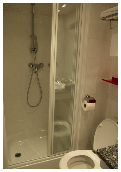 在巴黎,什么都小小的,电梯也是小到不行 。我们的房门,大大的数字挺有趣的什么都很小,小小的玄关、小小的衣柜, 小小的房间,床很舒适我们睡的很好。小小的浴室 这淋浴间根本挤不下两个人~~缺点是,旁边有些酒馆,半夜酒客发酒疯,很吵。