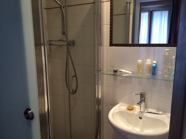 我比较推荐这个酒店,就在地铁出口,方便,房间巨小,但是很干净,洗澡水很大,床也舒服。电梯也MINI,我和胖子站进去后就一点空间没有了。生平第一次见,可以理解,巴黎是个寸土寸金的地方。人民币800每晚。早餐8欧一人,东西少质量不错,回来后简直觉得成都的面包没法吃。
