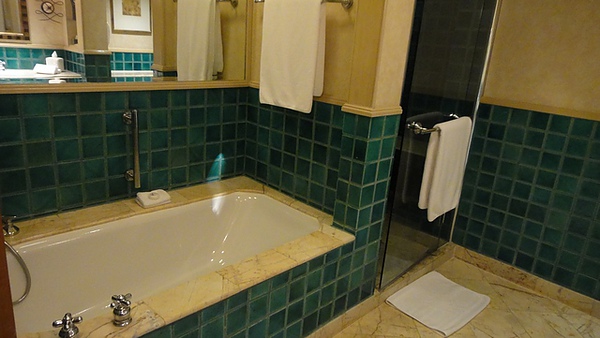 房间每天都有新鲜水果,觉得喜来登的床超好睡的,我粉满意它的床。浴缸可以泡澡,后面是干湿分离冲澡的地方,里面空间也蛮大的,淋浴的水量也很有劲,在那边洗澡是一种享受。虽然它是1996年开幕的饭店,整体来讲,硬件的维护还算不错,房间空间大配色舒服,人员服务亲切,让人回到饭店感觉很放松,欧巴桑很喜欢。早餐非常丰盛。