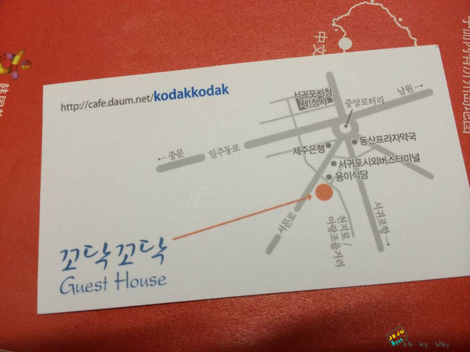 Guest house订的是Kkodak KkodakGuesthouse (科达科达旅馆) ,位置十分好找,背对西归浦长途汽车客运站往左走几十米看到一牌坊的路...