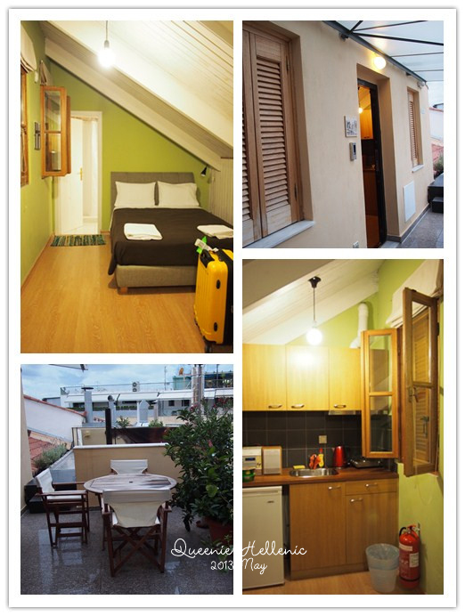 很可爱很舒服的小旅馆,我们订的是Loft房型70欧含早餐(可惜我们没时间吃),在顶楼还带一个小阳台,他还有普通双人房便宜一点。距离Monastiraki地铁站步行不到十分钟,不过第一次有点难找,酒店的涂鸦风格很特别。Monastiraki是地铁蓝线(机场线)和绿线(去港口)的换乘点,而且距离购物的Ermou Street很近,附近吃的也多,所以住在这边挺方便的,推荐!