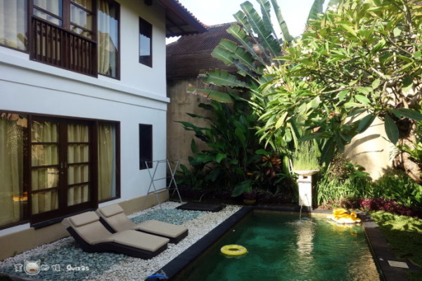 巴厘岛一流的酒店,二流的海滩,三流的景点绝对不是瞎说,选酒店的时候选花眼,努沙杜瓦的海滩最好,但酒店最贵,一溜五星级,住标间还可以,但几家一起住带泳池的别墅住不起。偏僻点的地方泳池别墅很便宜,但还想兼顾海滩。最后选的这家达姆帕缇别墅酒店(Dampati Villas)在沙努尔,不是很热闹的地方,全别墅套房,三卧室带泳池的每晚1600不到,含早,距海滩步行3分钟,周围有小市场和饭馆。除了海滩不是特别干净其他没什么缺点,尤其是泳池,大人孩子都特满意,太省心了。