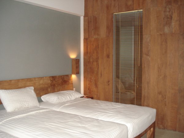 房间在2楼,比较大,设施齐全。酒店门口是酒吧、咖啡馆一条街